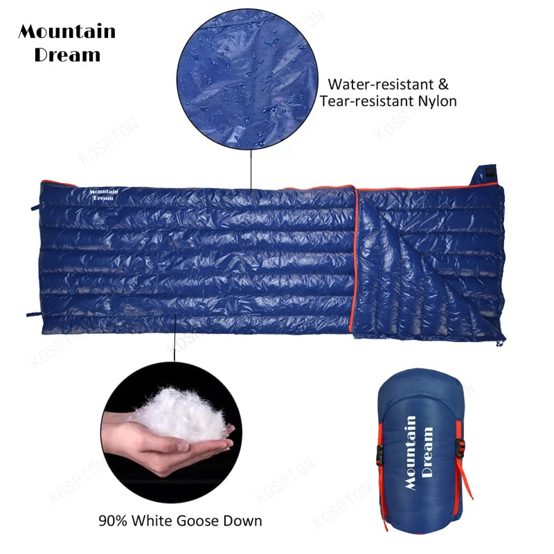 Camping Sleeping Bag 90% Goose Down Adult 200*73cm Envelope Type Ultralight Portable Sliping Down Sleeping Bag 3 Season Warm