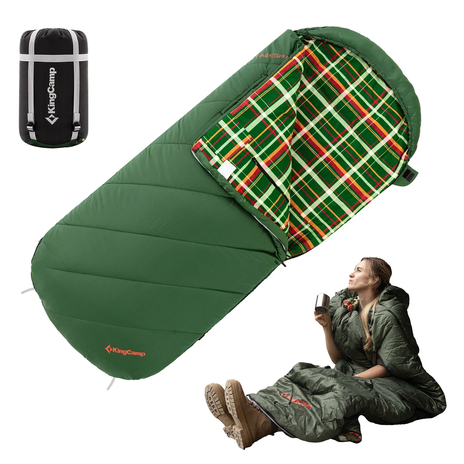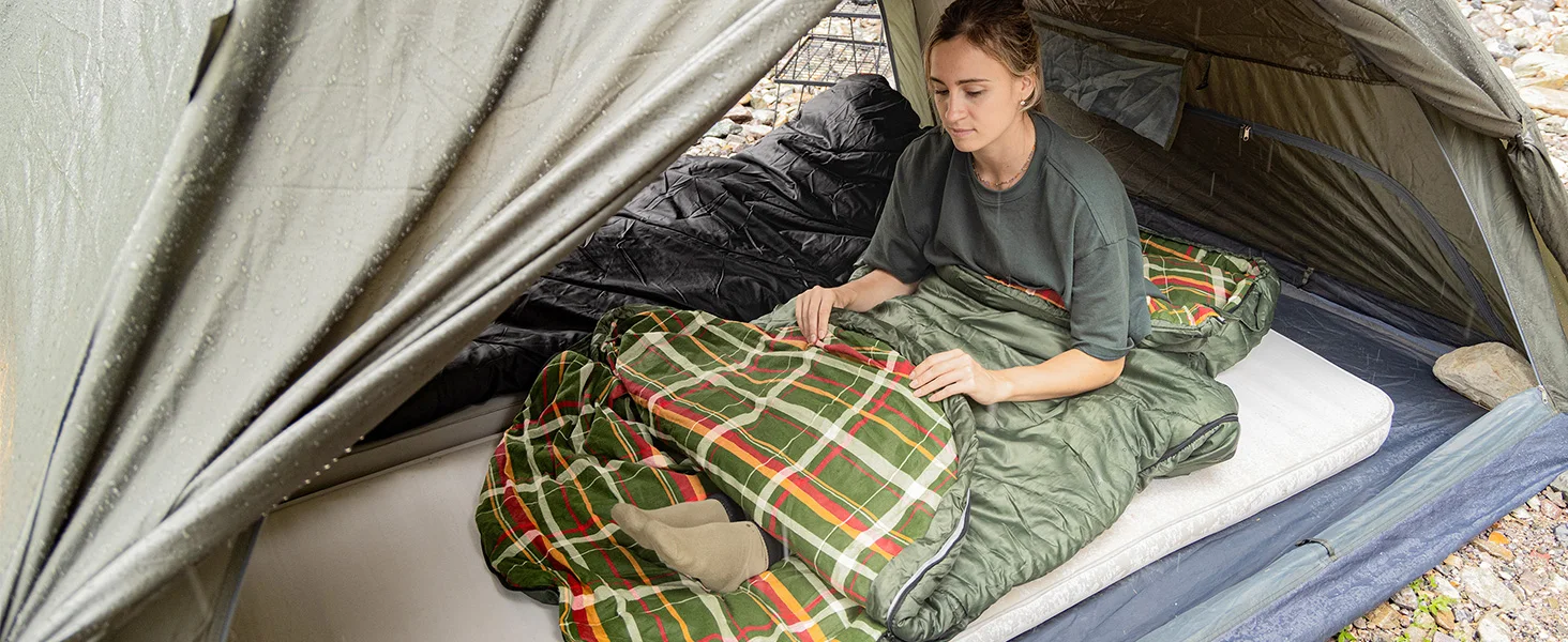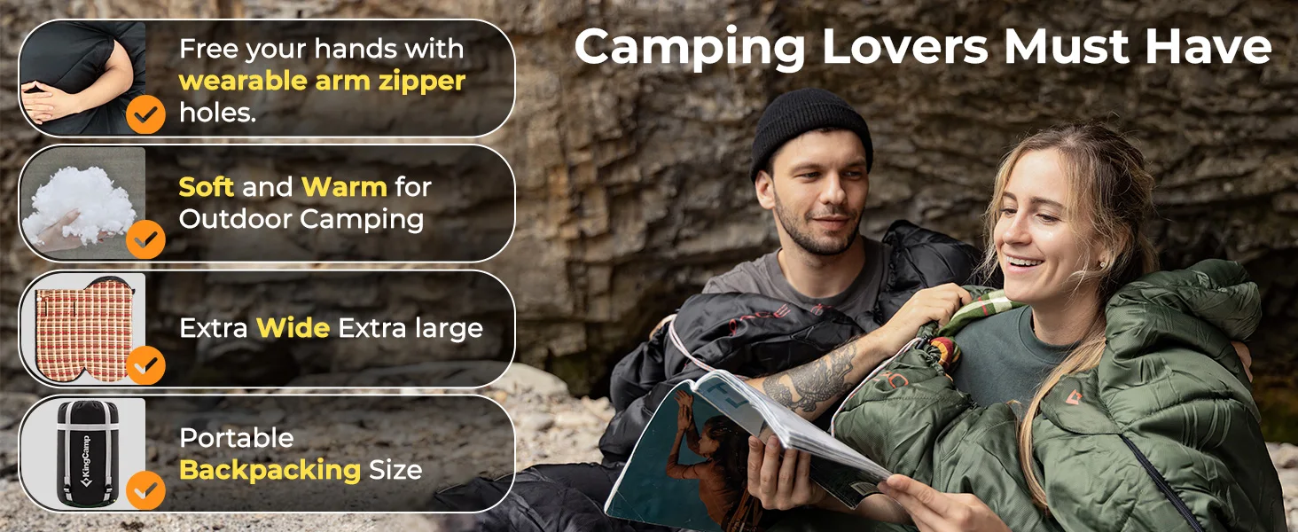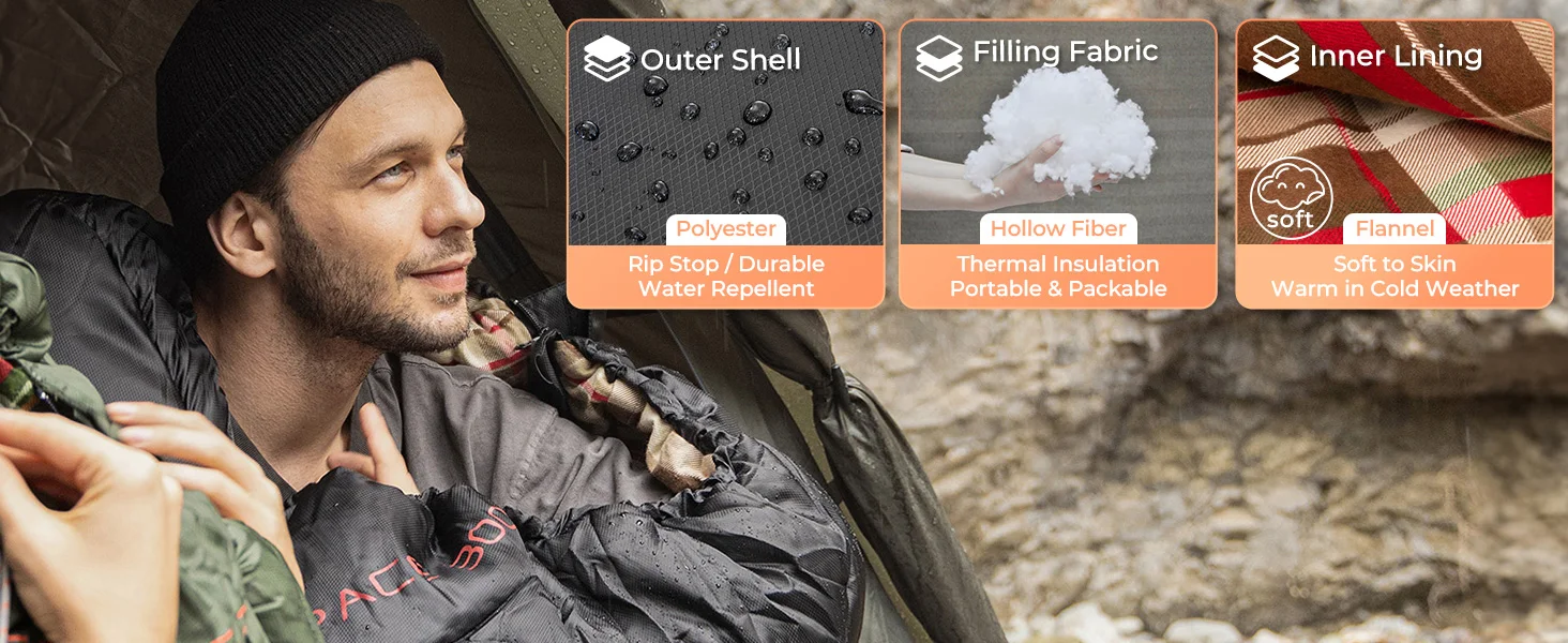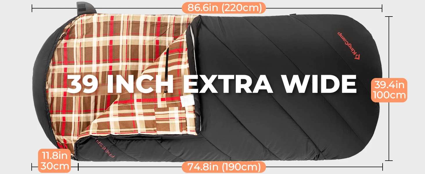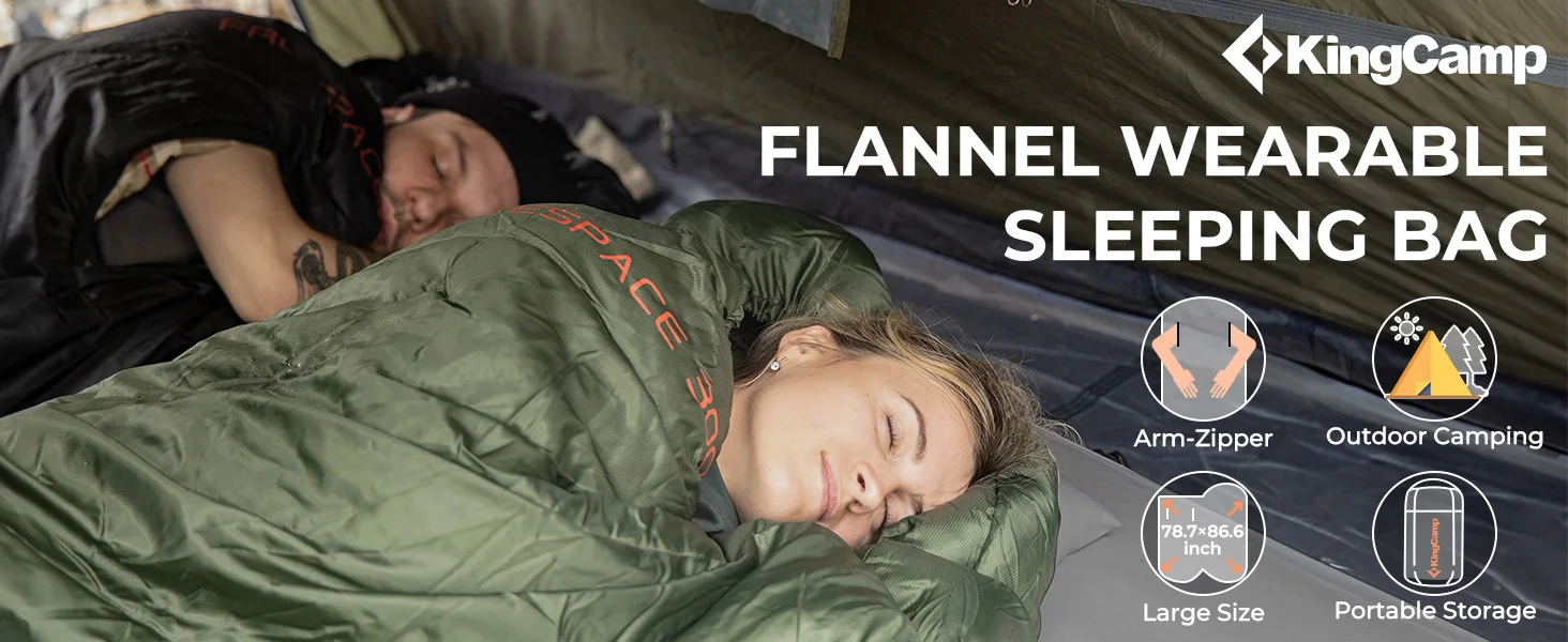 KingCamp Flannel Sleeping Bag, Single Enlarged Stretchable Polyester-cotton Flannel Oval Capped Sleeping Bag For Camping
