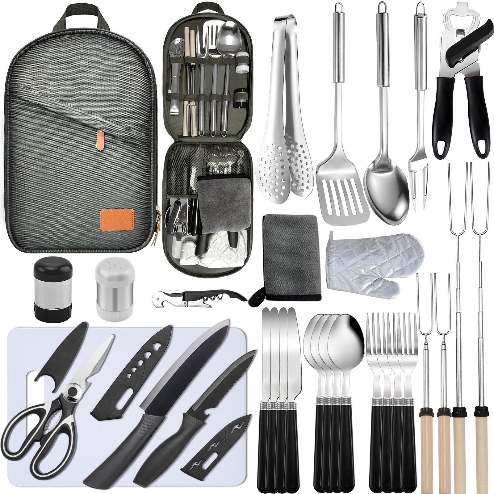 Portable Camping Kitchen Utensil Set-31pcs Camping Essentials Camping Accessories Gear Must Haves Camping Cookware Kit, Stainless Steel Outdoor Cooking And Grilling Utensil Organizer Travel Set Perfect For Travel, Picnics, RV