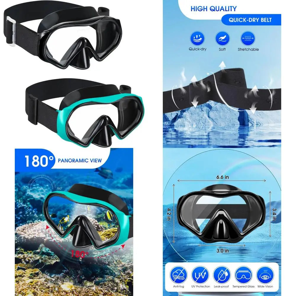 Swimming Goggles Scuba Snorkeling Mask for Adults, Tempered Glass with Panoramic View Anti-Leak and Anti-Fog Technology, Adjust